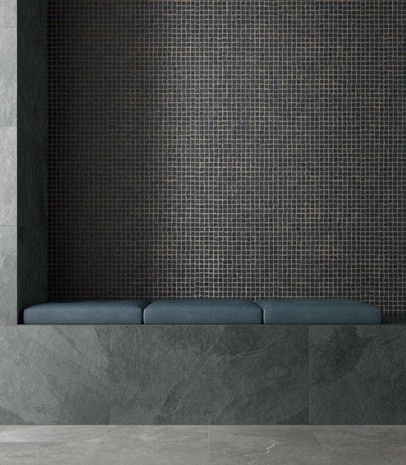 The Materia collection combines Italian and American slates with an original texture. Four different colours, expressive and natural, are available in a wide range of formats from 30x60 to 80x160. The honed satin and natural surface sets off the realistic slate cut on the tiles.